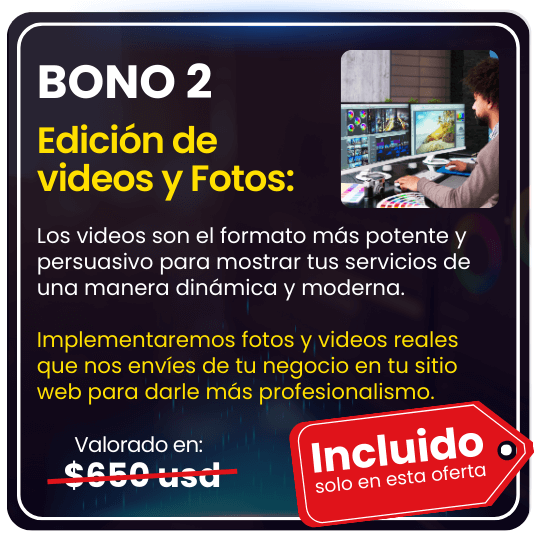 • BONO 2: Edición de videos y fotos para tu sitio web Incluido