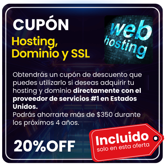 • CUPÓN del 20% OFF + Asesoría para Hosting, Dominio y Certificado SSL con el Proveedor #1 en USA Incluido