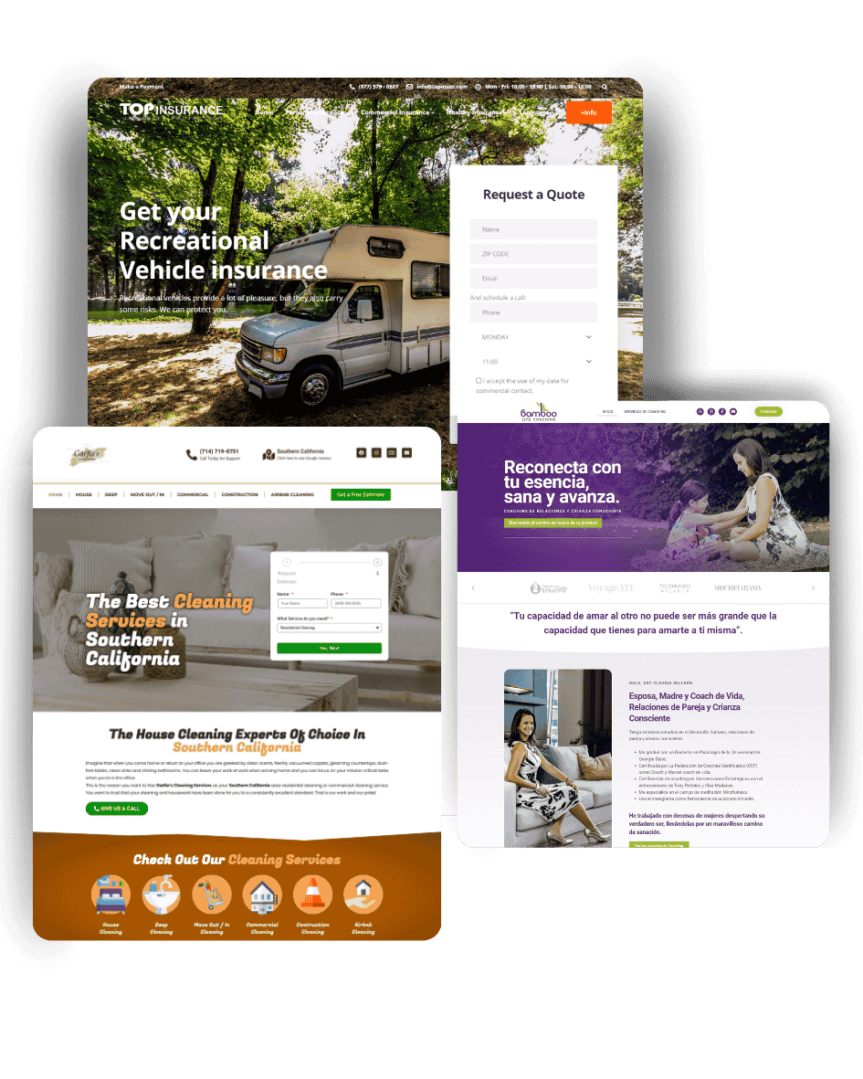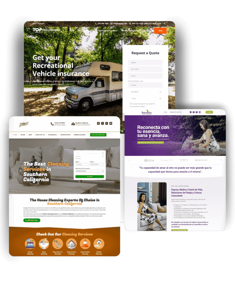 Diseño ideado para negocios de servicios que desean captar rápidamente la atención de los visitantes. Incluye Páginas dedicadas para servicios + Estrategia Geolocal + Página de Contacto + Sección de Reviews conectado a perfil de Google u otra plataformas, Conexión a redes sociales + Integración de plataformas de pago, booking o estimadores + Galería de fotos + Blogs + otras personalizaciones de acuerdo a las necesidades del negocio.